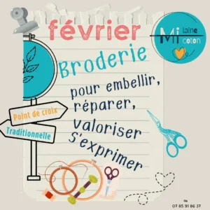 Je me lance dans la broderie » Venez choisir quelle technique vous plait, point de croix ou broderie traditionnelle, broderie sashiko …